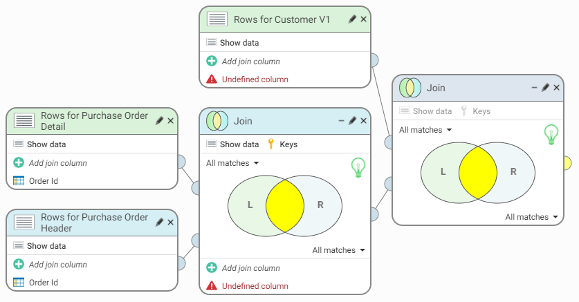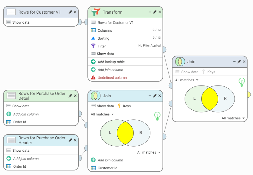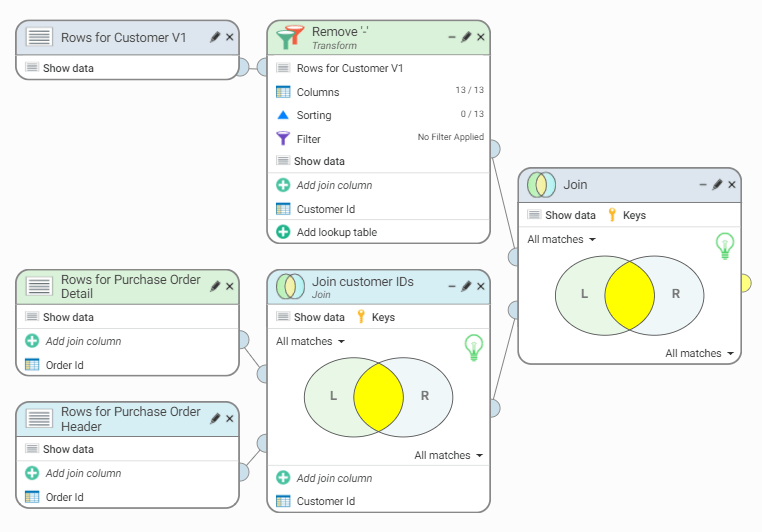 12. Connect this Join step to Rows for Customer V1 and the first Join step: