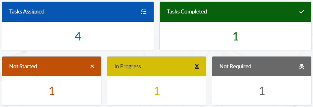 The ‘My Tasks’ section will present you with an overview dashboard, which will tell you succinctly how many tasks are allocated to you, your team or your role, and the status of each task: