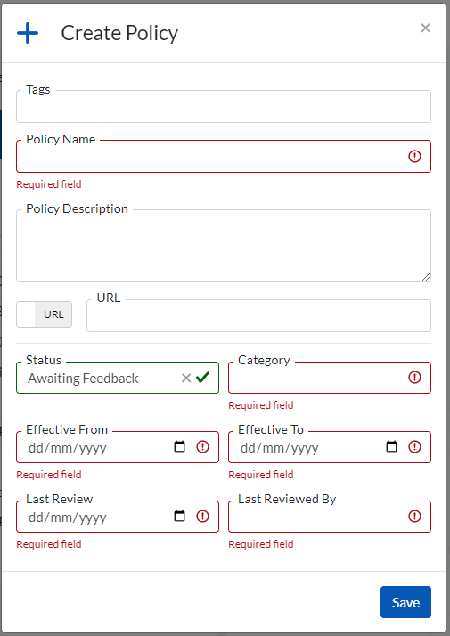 This section is a library for storing and maintaining data Policy documentation that sets out the data governance framework for the organization. The Policy documents can be directly uploaded or linked.