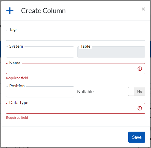 Tables and columns can automatically be created by importing the metadata in the systems section.