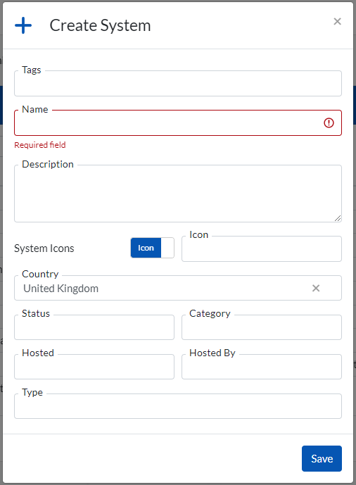 Clicking on the ‘Create System’ button in the Systems Window will prompt the window below.