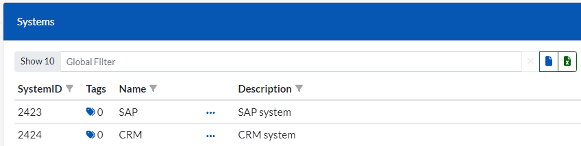 From the main menu go to (MetaData > Systems). You will be presented with the list of current systems as shown below.
