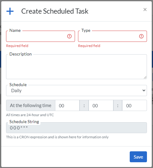 To view or edit any existing task simply double click on the Task in the ‘Scheduled Tasks’ window. To create a new task, simply click on the ‘Schedule a Task’ button and you will be presented with the window below.