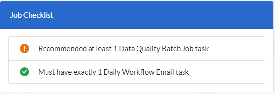 The ‘Job checklist’ window (shown below) located to the right of the screen, contains a checklist to help ensure that all Tasks have been set accordingly.
