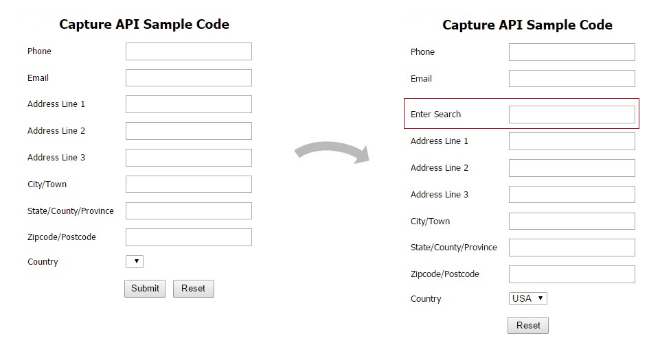 The Intuitive workflow allows you to search as you type, using a single textbox. Once this workflow is enabled, sample.html will render additional html elements: