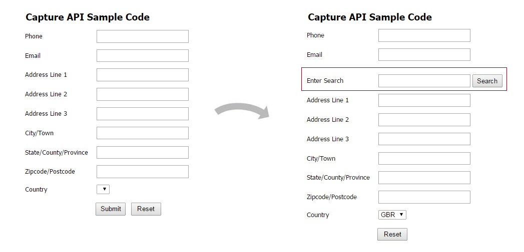The Singleline workflow provides address search in Singleline mode where an address can be searched on by entering it in a single textbox. Once this workflow is enabled, sample.html will render additional html elements: