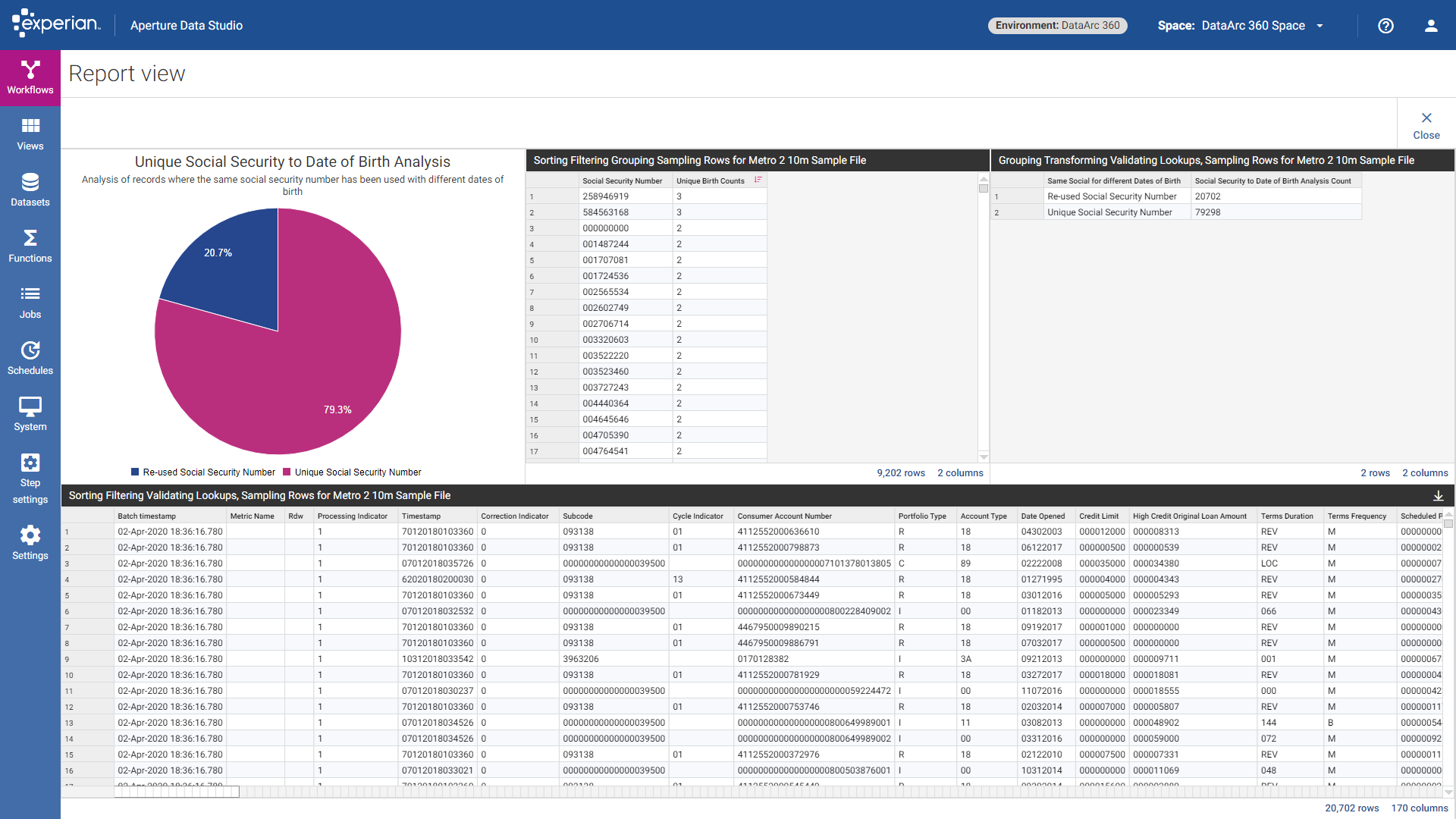 This second report type provides more detail on specific rules and records. In this example we're showing unique vs re-used social security numbers (you can re-use this as a template for any other validation rule):